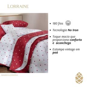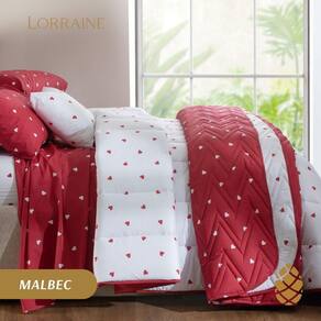 Jogo de Cama Queen Sultan 180F Sonhare Prata Coração 4 Peças Cor: Malbec Descrição Jogo De Cama Queen 180 Fios Sultan Sonhare Prata Coração O Jogo de Cama algodão e poliéster proporciona noites de sono mais tranquilas e confortáveis. Confeccionado em tecido algodão e poliéster com sua composição em 180 fios, traz conforto e sensação de maciez com um toque leve e macio. Fronha com aba o tecido calandrado e com anti-pilling,que impede a formação de bolinhas nas peças, prolongando a durabilidade e garantindo a maciez. Suas cores e estampas atraentes, deixam seu ambiente mais alegre com um toque de modernidade. Beleza e mais tempo de conservação do produto com caimento perfeito. Contém: 1 Lençol de cima: 2,40m x 2,50m 1 Lençol de elástico: 1,60m x 2,00m x 40cm de altura 2 Fronhas: 50cm x 70cm Cada peça deste conjunto foi pensada para oferecer a máxima qualidade, conforto e estilo. Ideal para quem aprecia a sofisticação nos detalhes e busca transformar o quarto em um espaço de puro conforto e beleza. Adquira o seu Conjunto de Cama Linha Prata 180 Fios Sonhare Da Sultan e sinta a diferença todas as noites Instruções de lavagem: Lavar à temperatura máxima de 30C Não usar alvejante à base de cloro Não usar secadora Pendurar na vertical sem torcer Passar à temperatura máxima de 150C Não limpar à seco Limpeza a úmido em processo normal Não incluso Edredom / Colcha e produtos de Decoração da foto.