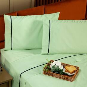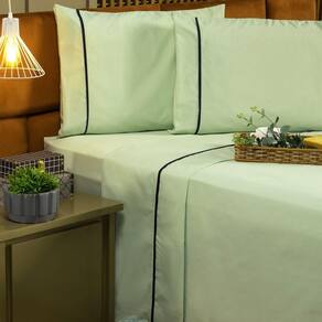 Jogo De Cama Milano Liso Solteiro 03 Peças - Percal 200 Fios C/ Viés Cor Verde