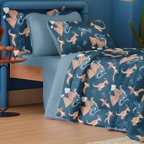Jogo de Cama Solteiro Atlantix 2 Pçs 88x188x30 100% Algodão Era dos Dinossauros -