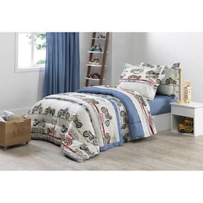 Jogo de Cama Solteiro Infantil Aventura Karsten A estampa do momento para decorar o quartinho do seu pequeno aventureiro. Assim fica até mais gostoso ir dormir Cores: Branco/azul Estampa: Aventura Antialérgico, Antipilling (não dá bolinha) Composição: 100% algodão, Tecido: Percal 180 fios Linha Percal Comfort Possui nanotecnologia com íons de prata, com ação antimicrobiana Marca: Karsten Fabricado no Brasil