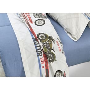 Jogo de Cama Solteiro Infantil Aventura Karsten A estampa do momento para decorar o quartinho do seu pequeno aventureiro. Assim fica até mais gostoso ir dormir Cores: Branco/azul Estampa: Aventura Antialérgico, Antipilling não dá bolinha Composição: 100% algodão, Tecido: Percal 180 fios Linha Percal Comfort Possui nanotecnologia com íons de prata, com ação antimicrobiana Marca: Karsten Fabricado no Brasil