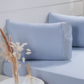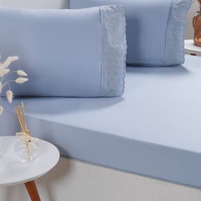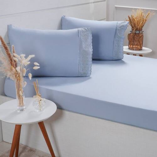 Jogo de Cama Solteiro Broderie 2 Pçs Bordado Inglês 88x188x30cm Blue -