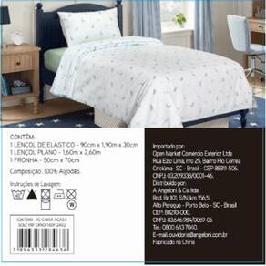 Contém: 1 Lençol de Elástico - 90cm x 1,90cm x 30cm 1 Lençol Plano - 1,60cm x 2,60cm 1 Fronha - 50cm x 70cm Composição: 100% Algodão