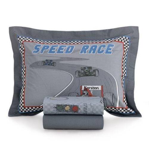 Jogo de Cama Solteiro Infantil Corrida 200 Fios Karsten Jogo de Cama Solteiro Infantil 200 Fios Karsten Feito em 100% algodão e com acabamento de 200 fios, o jogo de cama solteiro infantil oferece um tecido encorpado, altamente respirável, hipoalergênico e resistente a bolinhas. O sobre lençol de 1,80m x 2,50m conta com dobra feita, garantindo um visual elegante. O lençol com elástico 1,00m x 2,00m x 35cm estampado facilita a rotina e mantém o colchão protegido. A fronha com estampa dimensionada, tem quatro abas de 4 cm, oque adiciona um toque impecável ao conjunto. Combinando qualidade e charme, o jogo é ideal para noites de sono confortáveis e cheias de aventuras Contém:1 sobre lençol estampado com dobra feita. Tamanho: 1,80m x 2,50m1 Lençol com elástico estampado. Tamanho: 1,00m x 2,00m x 35cm1 Fronha com abas. Tamanho: 50cm x 70cm Composição: 200 fios, 100% algodãoEstampa: CorridaMarca: Karsten Marca: Não Informado