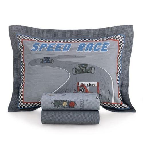 Jogo de Cama Solteiro Infantil Corrida 200 Fios Karsten Jogo de Cama Solteiro Infantil 200 Fios Karsten Feito em 100% algodão e com acabamento de 200 fios, o jogo de cama solteiro infantil oferece um tecido encorpado, altamente respirável, hipoalergênico e resistente a bolinhas. O sobre lençol de 1,80m x 2,50m conta com dobra feita, garantindo um visual elegante. O lençol com elástico 1,00m x 2,00m x 35cm estampado facilita a rotina e mantém o colchão protegido. A fronha com estampa dimensionada, tem quatro abas de 4 cm, oque adiciona um toque impecável ao conjunto. Combinando qualidade e charme, o jogo é ideal para noites de sono confortáveis e cheias de aventuras Contém:1 sobre lençol estampado com dobra feita. Tamanho: 1,80m x 2,50m1 Lençol com elástico estampado. Tamanho: 1,00m x 2,00m x 35cm1 Fronha com abas. Tamanho: 50cm x 70cm Composição: 200 fios, 100% algodãoEstampa: CorridaMarca: Karsten Marca: Não Informado Ean: 7909156337721