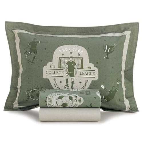 Jogo de Cama Solteiro Infantil Futebol 200 Fios Karsten Jogo de Cama Solteiro Infantil 200 Fios Karsten Inspirado no universo do futebol, este jogo de cama traz energia e diversão para o quarto infantil. O sobre lençol exibe personagens como goleiro, atacante e bola em campo, criando uma cena animada que estimula a imaginação. A fronha é dimensionada e acompanha o tema, enquanto o lençol com elástico apresenta uma estampa suave em tom bege, garantindo equilíbrio visual. É a escolha ideal para crianças apaixonadas pelo esporte, que querem trazer a emoção do campo para o dia a dia. Contém:1 lençol de cima com dobra feita. Tamanho: 1,80m x 2,50m1 lençol de baixo com elástico. Tamanho: 1,00m x 2,00m x 35cm1 fronha com aba. Tamanho: 50cm x 70cm Material: 200 fios, 100% algodãoEstampa: FutebolMarca: Karsten Marca: Não Informado Ean: 7909156340721