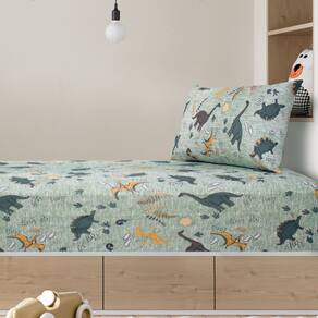 Jogo de Cama Solteiro Kids 2 Pçs Doce Vida Malha 70% Algodão 30% Poliéster Dino Selva -