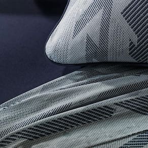 A estampa traz um design geométrico moderno em tons de azul, perfeita para quem busca sofisticação e personalidade na decoração do quarto. Produzida em puro algodão, garante conforto e maciez em todas as peças, oferecendo bem-estar em cada detalhe. O edredom conta com enchimento em poliéster thermobonder, proporcionando aconchego e durabilidade. Já o jogo de colcha apresenta acabamento em viés e porta-travesseiro com abas de 4cm, além de matelassado quadriculado que confere elegância extra. Os jogos de cama completos incluem lençol superior com dobra feita, lençol inferior com elástico de 40cm de altura para perfeito ajuste em colchões queen e king, e fronhas envelope com viés em rolotê. Também disponível na versão simples, com lençol de elástico e fronhas sem abas, essa linha une praticidade e estilo, permitindo composições versáteis e contemporâneas.