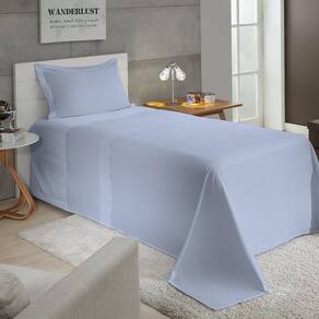 Jogo de cama solteiro liso 300 fios nova américa Cor: azul Jogo de cama solteiro de algodão completo, formado por 3 peças: 1 lençol, medindo 1,60m x 2,47m, com dobra feita para um visual mais elegante. 1 lençol com elástico, com dimensões de 90cm x 1,90m x 30cm, para um ajuste perfeito em seu colchão. 1 fronhas de 50 cm x 70 cm, com abas, proporcionando um toque sofisticado. contagem de fios 300 fios tecido 100% algodão acabamento roupa de cama com lençol inferior com elástico e lençol superior com dobra feita. Detalhes fronha fechamento envelope com abas. Abas de 7 cm. Vantagens ao optar por um tecido 100% algodão você adquire um tecido que oferece uma cobertura impecável e uma sensação incrível de maciez, além de ser altamente durável e respirável. Sinta logo ao deitar o conforto incomparável e sensação de frescor, proporcionando uma noite tranquila de sono. Não comprometa o conforto e a qualidade, escolha uma roupa de cama que fará suas noites de sono serem verdadeiramente relaxantes e revigorantes. Aposte na praticidade deste conjunto, pois é resistente a lavagens frequentes e ao ferro de passar, facilitando seu cuidado e manuseio sem aparecimento de bolinhas. Marca: Não Informado