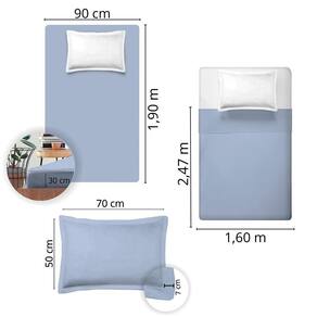 Jogo de cama solteiro liso 300 fios nova américa Cor: azul Jogo de cama solteiro de algodão completo, formado por 3 peças: 1 lençol, medindo 1,60m x 2,47m, com dobra feita para um visual mais elegante. 1 lençol com elástico, com dimensões de 90cm x 1,90m x 30cm, para um ajuste perfeito em seu colchão. 1 fronhas de 50 cm x 70 cm, com abas, proporcionando um toque sofisticado. contagem de fios 300 fios tecido 100% algodão acabamento roupa de cama com lençol inferior com elástico e lençol superior com dobra feita. Detalhes fronha fechamento envelope com abas. Abas de 7 cm. Vantagens ao optar por um tecido 100% algodão você adquire um tecido que oferece uma cobertura impecável e uma sensação incrível de maciez, além de ser altamente durável e respirável. Sinta logo ao deitar o conforto incomparável e sensação de frescor, proporcionando uma noite tranquila de sono. Não comprometa o conforto e a qualidade, escolha uma roupa de cama que fará suas noites de sono serem verdadeiramente relaxantes e revigorantes. Aposte na praticidade deste conjunto, pois é resistente a lavagens frequentes e ao ferro de passar, facilitando seu cuidado e manuseio sem aparecimento de bolinhas. Marca: Não Informado