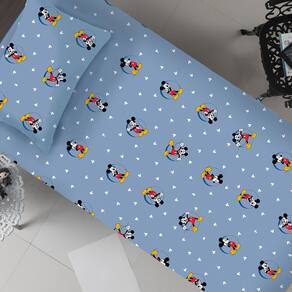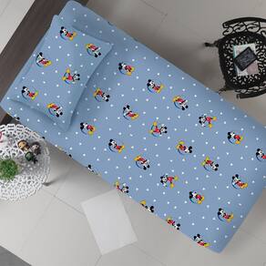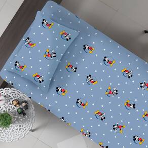 Jogo de Cama Solteiro Mickey Disney Malha 70% Algodão 30% Poliéster Circle Azul -