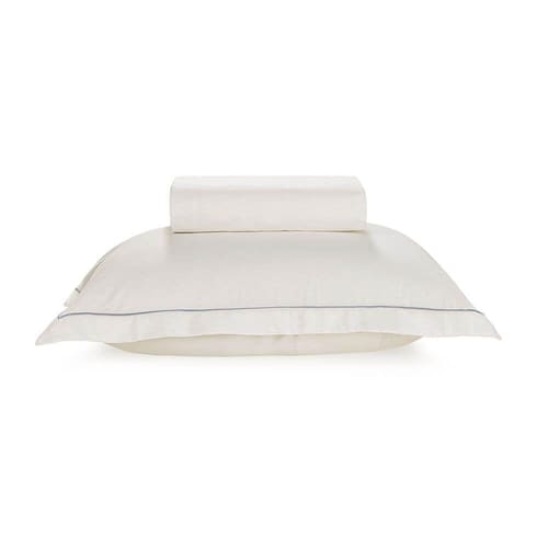 O Jogo de Cama Royal, 180 Fios Percal - 100% Algodão, acompanha lençol com elástico e uma fronha que são verdadeiros coringas e confeccionados com detalhes de ponto royal. São peças do estilo básico com design clássico e minimalista que oferecem versatilidade e coordenação para diversos estilos.