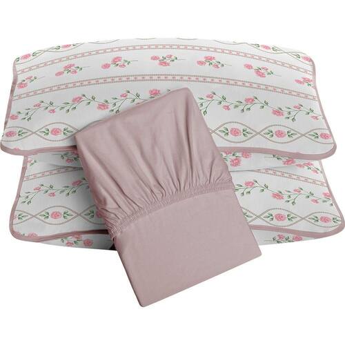 Jogo de Cama Tecebem Casal Malha 100% Algodão Grazi 3 peças Premium Rosinha