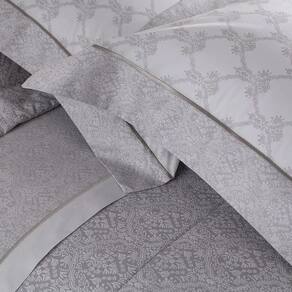 O Jogo de Cama Valence da Buddemeyer, é fabricado com materiais de alta qualidade para garantir durabilidade durante o uso e noites de sono ainda melhores. Extremamente sofisticada, a Coleção Valence possui visual marcante e muito elegante. A bela composição com delicados arabescos em ton sur ton preenche o modelo com elegante fluidez. E o acabamento em ponto cheio emoldura a vira do sobre lençol e fronhas, enriquecendo as peças com refinamento. Em puro algodão com fibras longas, esta coleção possui frescor com toque delicado, extraordinária maciez e conforto.