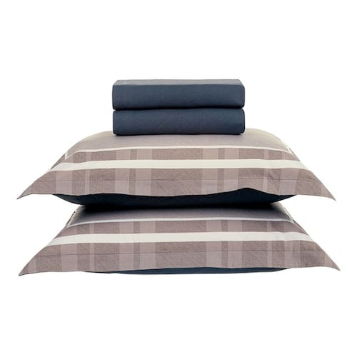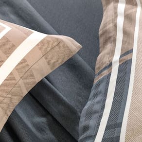 O Jogo de Cama Vitor 200 Fios, da Karsten une com elegância o design atemporal ao conforto do toque macio do algodão. Confeccionado em percal 200 fios, oferece alta respirabilidade e uma sensação agradável ao toque. As fronhas dimensionadas se destacam pela estampa de texturas que emoldura o travesseiro em tons de bege, azul-marinho e detalhes em branco, valorizada pelas quatro abas de 4 cm. O sobre lençol recebe dobra feita com bainha de 3 cm e uma textura sutil estampada em azul-marinho, enquanto o lençol com elástico acompanha a mesma padronagem, garantindo harmonia ao conjunto. Uma cama que imprime presença e acolhe em aconchego, perfeita para compor o quarto com conforto. Uma escolha que combina estética e funcionalidade, transformando sua cama em um espaço acolhedor e elegante! Informações básicas: Marca: Karsten Modelo: 3474129 Características: Material: 100% algodão 200 fios Embalagem: 1 sobre lençol, 1 lençol com elástico e 2 fronhas. Especificações técnicas: Dimensões aprox. do sobre lençol (A x L): 2,20m x 2,50m Dimensões aprox. do lençol com elástico (A x L): 1,38 m x 1,88 m x 35cm Dimensões aprox. das fronhas (A x L): 50 x 70 cm Garantia: contra defeitos de fabricação