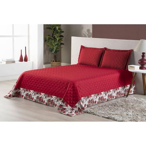 Jogo De Cama Vitória Queen Vermelho Babado Estampado 3 Peças