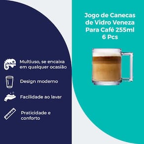 A charmosa Caneca de Vidro Veneza para Café 255ml é a escolha ideal para quem busca elegância e praticidade no momento de servir. Elaborada com vidro de alta qualidade, esta caneca é durável e possui um design sofisticado que valoriza a apresentação do seu café ou outras bebidas. Com capacidade de 255ml, é perfeita para diversas ocasiões, desde o café da manhã até reuniões especiais. Esta caneca de vidro oferece resistência e estilo, agregando encanto e funcionalidade ao seu dia a dia.