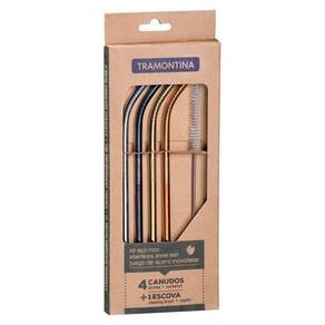 Jogo de Canudos Coloridos Tramontina em Aço Inox com Escova 5 Peças
