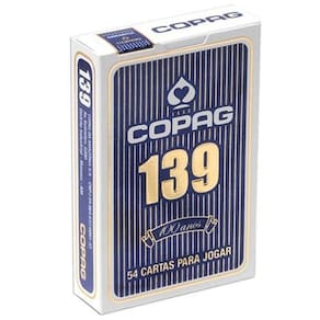 Jogo de Cartas - Baralho para Jogar - 139 - Tradicional - Azul - Copag: os Baralhos Copag são referência em excelência de qualidade no mundo todo. Possuem fácil deslize e são de agradável manuseio. O Baralho 139 é o baralho mais famoso da linha de baralhos Copag e também é o Baralho Tradicional mais querido do Brasil. Fabricado desde 1923, se mantém um produto de tecnologia inovadora, produzido em cartão de alta qualidade, que garante grande durabilidade e conforto no manuseio. As cartas do Baralho 139 Tradicional Copag são do tamanho Bridge Size (57 x 89 mm) e produzidas em exclusivo cartão couché 290 g, não transparentes, atóxicas e recicláveis. INFORMAÇÕES: • Produto: Baralho 139 Tradicional Azul • Marca: Copag • Linha: 139 • Tipo: Jogo de Cartas • Tipos de Jogo: Buraco, Paciência, Tranca e Truco • Jogadores: para 2 ou mais participantes • Tamanho da carta: Bridge Size 57 x 89mm • Conteúdo: 55 cartas (54 cartas para jogar e 1 carta garantia) • Recomendação: para crianças a partir de 04 anos de idade ESPECIFICAÇÕES: • Referência: 91014 • Embalagem (C x A x L): 6.1 x 9.5 x 02 cm • Embalagem (Peso): 0.100 kg • Material / Composição: Couché 290 gramas • Registro: CE-BRI/INNAC 0276-01A • Certificado: Órgãos Autorizados - OCP´S (Organismos de Certificação de Produtos) BENEFÍCIOS DE BRINCAR: - Eleva a autoestima - Exercita a memória - Estimula o raciocínio - Exercita o imaginário - Desenvolve a criatividade - Desenvolve percepção visual - Desperta a atenção e curiosidade - Desenvolvimento neuropsicológico - Estimula habilidades motoras básicas - Incentiva a comunicação e linguagem - Desenvolve aspectos emocionais e afetivo - Estimula o reconhecimento de formas e cores AVISO: - As imagens são meramente ilustrativas - Os tamanhos e medidas são aproximados - As cores e estampas dos produtos podem ter variações - As informações são de responsabilidade do fabricante ou fornecedor Ean: 7896008910112