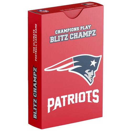 O jogo BLITZ CHAMPZ NEW ENGLAND PATRIOTS é um divertido jogo de cartas de futebol para crianças a partir de 7 anos! O Blitz Champz pode ser jogado por 2 a 6 pessoas ao mesmo tempo, tornando-o o jogo perfeito para crianças e famílias. Adicione mais diversão à noite de jogos da NFL e da faculdade, tailgating, e festas do Super Bowl com Blitz Champz!
