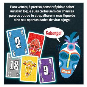 Em Cabanga!, sua missão é se livrar das cartas da mão o mais rápido possível, jogando no momento certo e sem abrir brechas. Parece fácil? Pois é aí que os outros jogadores entram em ação! Se você criar um intervalo entre os números das cartas, prepare-se: outros jogadores podem gritar “Cabanga!” e jogar cartas no meio da sua jogada, enchendo sua mão com pontos negativos!
