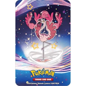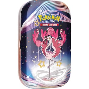 Pokémon TCG: Escarlate e Violeta — Mini Lata Paldean Fates – Flamigo (2 pacotes booster, 1 adesivo e 1 cartão de arte) - Os holofotes brilham em Pokémon Brilhantes fazendo seu retorno ao Pokémon TCG! - Expanda sua coleção com esta mini lata Scarlet & Violet—Paldean Fates, com Flamigo. - Nesta mini lata, você encontrará 2 Pokémon TCG: Scarlet & Violet — booster packs Paldean Fates, 1 adesivo e 1 carta de arte Pokémon — você pode colecionar e combinar todos os 5! - Esta fantástica lata é fácil de abrir e tem o tamanho perfeito para levar seus cartões favoritos em qualquer lugar! - Brilhe com Pokémon da Paldea!