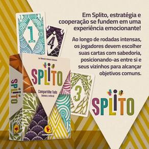 Jogo De Cartas Dinâmico Estratégico Splito Compartilhe Tudo Em Splito, estratégia e cooperação se fundem em uma experiência emocionante Ao longo de rodadas intensas, os jogadores devem escolher suas cartas com sabedoria, posicionando-as entre si e seus vizinhos para alcançar objetivos comuns. Com uma dinâmica inteligente, cada decisão molda o destino da partida. Porém, cuidado: a busca pela vitória exige um equilíbrio delicado entre ajudar os outros e priorizar seus próprios interesses. Prepare-se para um final surpreendente, onde cada jogador calcula sua pontuação multiplicando o total da área à sua direita pelo total da área à sua esquerda. Desafie suas habilidades táticas e sociais em Splito e compartilhe tudo, menos a vitória