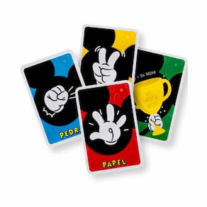 Jogo de Cartas - Disney Mickey - Pedra Papel e Tesoura - Pais e Filhos : agora a brincadeira de Pedra, Papel e Tesoura ganhou uma versão do Mickey muito divertida. Como jogar Pedra Papel e Tesoura Pais e Filhos? • Regra: 01) Antes de iniciar a rodada, é preciso que cada jogador diga “Pedra, Papel e Tesoura” ou “Jokenpô” e, em seguida, lançar uma carta. As possibilidades são: - Pedra ganha da tesoura - Papel ganha da pedra - Tesoura ganha do papel - Troféu ganha de todos 02) O jogador que ganhar uma partida deverá anotar seu ponto 03) Caso dois jogadores mostrem cartas com objetos iguais, nenhum dos dois ganha ponto 04) Quem terminar com maior quantidade de pontos vence o jogo Informações: • Produto: Jogo de Cartas Pedra, Papel e Tesoura do Mickey Mouse • Marca: Pais e Filhos • Coleção: Disney Junior • Linha: Mickey Mouse • Tipo: Jogo de Cartas Infantil • Categoria: Jogos e Tabuleiros • Objetivo: Acumular o maior número de pontos em 10 rodadas que os adversários • Jogadores: 02 participantes • Conteúdo: 56 cartas • Recomendação: para crianças a partir de 06 anos de idade Especificações: • Referência: 7924171 • Código de barras: 7908470024171 • Embalagem (C x A x L): 09 x 13 x 02 cm • Embalagem (Peso): 0.081 kg • Material / Composição: papel cartonado • Registro: CE BRI/INNAC 02008-03A • Certificado: Órgãos Autorizados - OCP´S (Organismos de Certificação de Produtos) Aviso: • As imagens são meramente ilustrativas • Os pesos, tamanhos e medidas são aproximados • As cores e estampas dos produtos podem ter variações • As informações são de responsabilidade do fabricante ou fornecedor