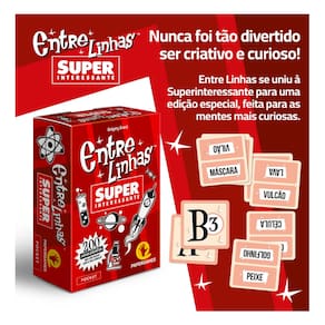 Se eles acertarem, você coloca sua carta na mesa; se errarem, ela sai do jogo! O objetivo dos jogadores é preencher a tabela na mesa com o maior número de cartas possível, adivinhando o local correto de cada uma. Escolham suas dicas com cuidado e tentem alcançar a maior pontuação possível! E nesta versão especial, prepare-se para 200 novas palavras que mergulham no universo da ciência, história e tecnologia, tudo isso com o toque criativo e marcante da Super. Quer mais? Combine diferentes versões do Entre Linhas e crie seu próprio jogo!