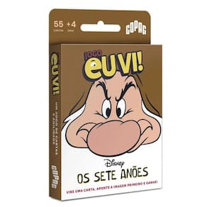 Os Sete Anões chegaram à coleção Eu Vi, trazendo ainda mais diversão e desafio para o seu jogo de observação e velocidade. Prepare-se para olhar atentamente, identificar padrões e ser o mais rápido a gritar Eu Vi para conquistar a carta da rodada. Será que você consegue encontrar as figuras antes de todo mundo Com uma mecânica dinâmica e envolvente, Eu Vi Os Sete Anões é perfeito para jogar com a família, reunir amigos e até levar para viagens. Simples, rápido e viciante O que vem na caixa 55 cartas ilustradas formato 56 mm x 87 mm Regras do jogo Dica: Quanto mais rápido você for, mais pontos acumula Garanta já o seu e divirta-se com Eu Vi Os Sete Anões