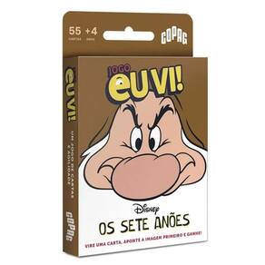 Os Sete Anões chegaram à coleção Eu Vi, trazendo ainda mais diversão e desafio para o seu jogo de observação e velocidade. Prepare-se para olhar atentamente, identificar padrões e ser o mais rápido a gritar Eu Vi para conquistar a carta da rodada. Será que você consegue encontrar as figuras antes de todo mundo Com uma mecânica dinâmica e envolvente, Eu Vi Os Sete Anões é perfeito para jogar com a família, reunir amigos e até levar para viagens. Simples, rápido e viciante O que vem na caixa 55 cartas ilustradas formato 56 mm x 87 mm Regras do jogo Dica: Quanto mais rápido você for, mais pontos acumula Garanta já o seu e divirta-se com Eu Vi Os Sete Anões