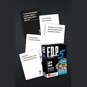 Jogo de cartas fdp expansão foi de propósito 5 - buró Desperte a 5º série ainda mais fdp dentro de você se você era um projetinho de fdp Expansão com 50 novas cartas para o conjunto básico de fdp. São 40 novas cartas brancas com respostas e 10 novas cartas pretas com perguntas que podem e devem ser misturadas com as cartas do conjunto básico de fdp. Este produto é uma expansão. Você precisará da caixa completa de fdp para usar a expansão fdp 5. Componentes: 10 cartas pretas,40 cartas brancas Ficha técnica:Idade: 18+;Jogadores: 4 a 12;Duração: 60 minutos;Sleeve: 50 63.5 mm x 88.0 mm ;Categoria: expansão;Mecânicas: seleção de cartas;Temas: adulto; humor;Idioma: português br.Homologação Inmetro: IP-BRI-1432/2021-01