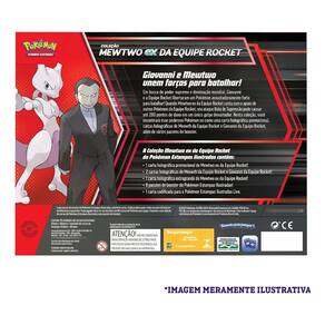 Cartas Pokémon Coleção Mewtwo ex e Giovanni Líde da Equipe Rocket - Copag Prepare-se para mergulhar no lado sombrio do universo Pokémon com a Box Pokémon Mewtwo ex da Equipe Rocket! Esta edição especial traz o lendário Mewtwo ex em versão holográfica promocional, além de cartas exclusivas do Meowth e do infame Giovanni, líder da Equipe Rocket Ideal para fãs da franquia, colecionadores e jogadores que buscam cartas poderosas e diferenciadas A box inclui ainda uma carta extragrande de Mewtwo ex, 6 pacotes de booster para expandir sua coleção com novas estratégias, e um código para o Pokémon TCG Live, para você duelar online com jogadores do mundo todo Perfeita para quem é apaixonado pela Equipe Rocket ou quer adicionar um toque de vilania à sua coleção, essa box é um item indispensável para todas as idades a partir dos 7 anos