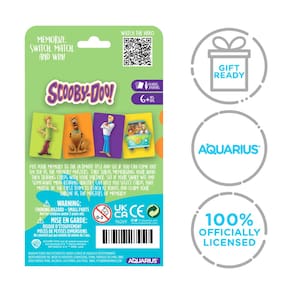 - O jogo de cartas mestre de memória Scooby Doo é projetado pela AQUARIUS e oficialmente licenciado. É a peça perfeita de recordações do Scooby Doo para adicionar à sua coleção