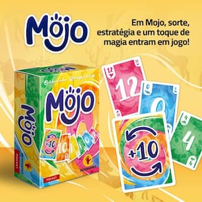 Mojo Em mojo, sorte, estratégia e um toque de magia entram em jogo. Seu objetivo é simples: marcar o mínimo de pontos possível. Para isso, descarte cartas, combine cores e acompanhe a contagem regressiva. Mas fique esperto... a carta mojo pode virar tudo num piscar de olhos - para o bem ou para o mal Cada rodada é dinâmica, repleta de jogadas inesperadas e momentos decisivos. Pegue, descarte, confie na sua intuição e torça para que seu mojo - aquele poder especial que faz tudo dar certo - esteja do seu lado Fácil de aprender e viciante de jogar, mojo é perfeito para qualquer ocasião e ainda conta com uma variante especial para 2 jogadores. E aí, será que você tem mojo pra isso Como jogar sistema 1 - 2 - 3 Está pronto para usar seu mojo 1 descarte cartas ou combine cores para reduzir sua pontuação. 2 três cartas na mão A contagem regressiva começa 3 pegue a carta mojo e confie na sorte... Ou pague o preço Variante para 2 jogadores inclusa Um jogo de cartas estratégico com um toque de magia Mojo traz um desafio que combina sorte e estratégia onde cada carta tem um papel crucial para reduzir sua pontuação e superar seus oponentes. Será que você tem mojo pra isso Partidas envolventes para 2 a 8 jogadores Em mojo, cada rodada é rápida e repleta de surpresas, oferecendo diversão sem espera perfeito para a família e grupos de amigos, garantindo momentos emocionantes e cheios de reviravoltas. Controle o fluxo do jogo com seu mojo Marque o mínimo de pontos descartando cartas e combinando cores. Mas fique esperto: a carta mojo pode mudar tudo num piscar de olhos, para o bem ou para o mal. Essa carta especial adiciona uma camada a cada rodada. Você tem mojo para virar o jogo quando mais importa Mojo é viciante e fácil de aprender Mojo é um jogo super acessível com regras simples, ideal tanto para jogadores casuais quanto para os mais competitivos, que irão adorar o modo avançado adicionando desafios extras Pequeno, barato e divertido Mojo é mais um jogo da linha , pequeno, barato e super divertido Homologação Inmetro: IP-BRI-1432/2021-01