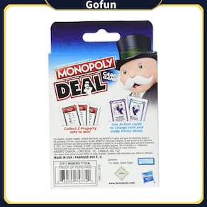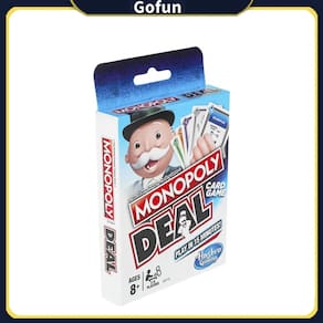 O jogo de cartas Monopoly Brand Deal é toda a diversão do jogo Monopoly em um jogo de cartas rápido. Ele vem com 110 cartões, incluindo cartões de propriedade, cartões de aluguel, cartões de casa e hotel e cartões de propriedade selvagem. As cartas de ação permitem que os jogadores façam coisas como cobrar aluguel e fazer negócios complicados. Cartões de casas e hotéis aumentam os valores dos aluguéis. Os Wild Property Cards ajudam os jogadores a construir conjuntos de propriedades. E os jogadores pagam suas dívidas com cartões de dinheiro. Seja o primeiro jogador a coletar 3 conjuntos completos de Cartas de Propriedade em cores diferentes para ganhar. Este jogo de cartas é uma ótima maneira de jogar o Fast-Dealing Property Trading Game em menos de 15 minutos!