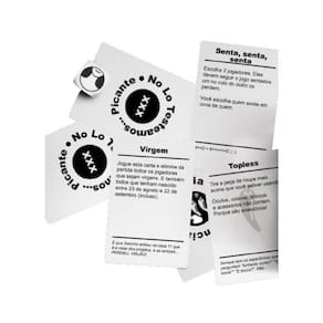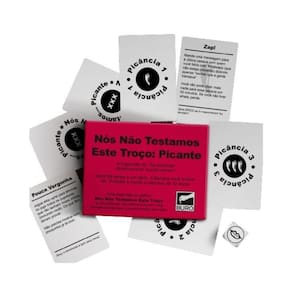 Jogo de Cartas Nós Não Testamos Este Troco Expansão Picante Nós Não Testamos Este Troço: PicanteAdicione um tempero picante ao jogo mais caótico de todos. Em Nós Não Testamos Este Troço: Picante, você não é obrigado a fazer o que não quiser, mas veja bem: quanto mais no clima estiver, maior será a sua chance de ganhar COMPONENTES: 69 Cartas,1 Dado. FICHA TÉCNICA:Idade: 18+;Jogadores: 2 a 19,7;Duração: 3 a 15 minutos;Designer: Chris Cieslik;Categoria: Jogo de Cartas;Mecânicas: Eliminação de Jogadores, Gestão de Mão, Seleção de Cartas;Temas: Adulto, Humor;Idioma: Português Br.
