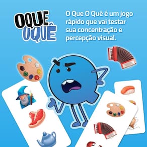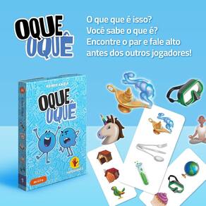 O que que é isso? Você sabe o que é? Encontre o par e fale alto antes dos outros jogadores! O Que O Quê é um jogo rápido que vai testar sua concentração e percepção visual. O Que O Quê é o primeiro jogo da nova Linha Micro – a linha de jogos que não pesa no seu bolso!