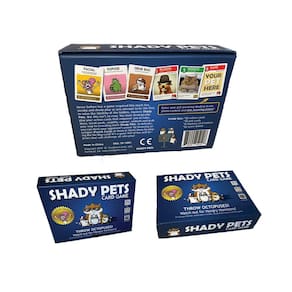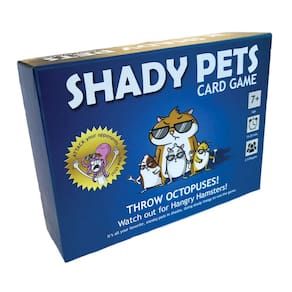 Shady Pets é um novo jogo de cartas que é um pouco como Clue e Uno, exceto que você pode jogar polvos, lidar com tartarugas nuas e evitar hamsters com fome! Este jogo de mesa criativo e estratégico garante risadas loucas e diversão para todos!