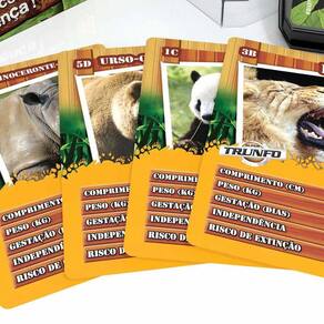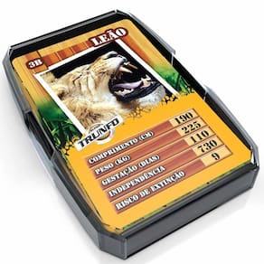 Super Trunfo Animais Selvagens traz 32 cartas com imagens e informações de animais selvagens para uma disputa superdivertida! Você compara sua carta com a do outro jogador. Mas escolha bem a característica que vai utilizar a cada rodada, pois, se sua carta ganhar, você fica com a carta do outro jogador; se perder, ele fica com a sua! No final, vence quem ganha todas as cartas do jogo.