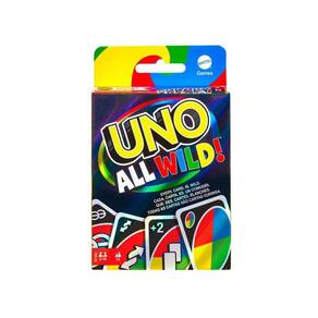 No jogo de cartas UNO All Wild, cada carta é um curinga, tornando o jogo uma versão ainda mais rápida e imprevisível do popular jogo de cartas familiar! Você não precisa combinar números ou cores como no UNO normal, mas não é tão fácil quanto parece. Cartas especiais realmente mudam o curso do jogo! As cartas especiais incluem o curinga ?skip two?, onde dois jogadores são pulados em vez de apenas um jogador, um curinga ?troca forçada?, onde os jogadores devem trocar as cartas em sua mão, e muito mais!