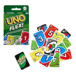Aviso: Imagens meramente ilustrativas!! O UNO Flex Card Game é baseado no UNO Card Game que os jogadores conhecem e amam, mas com uma atitude flexível. Cartas especiais permitem que os jogadores mudem a cor de uma carta para fazer uma combinação ? um 4 Vermelho pode se tornar um 4 Verde em uma flexão. As cartas Flex tem 2 lados ( Lado Regular e o Lado Flex ) use a carta de Energia para jogar o lado Flex. As cartas de Ação Flex tem mais capacidades. CONTEÚDO:1 Jogo UNO com 112 cartas e inclui uma Regra (leia o manual que vem junto) Tipo da carta: Cartão e Plástico Quantidade de cartas: 112 cartas ( 56mm x 87mm ) Idade recomendada: 7+ anos De: 2-8 Jogadores Tempo estimado para cada partida: 30 minutos Marca: Mattel