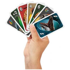 O jogo de cartas UNO Jurassic World Rebirth da Mattel possui deck com artes inspiradas em personagens e cenas do filme, para 2 a 10 jogadores a partir de 7 anos. A mecânica clássica combina números e cores, com regra especial "Ataque do T-Rex" que obriga o jogador a descartar 5 cartas se não combinar a cor escolhida. ? O baralho mede 18,1 cm x 10,8 cm x 13 cm embalado, peso 139 g, incluindo 112 cartas normais, 1 carta colecionável metalizada e regras de jogo. Indicado para noites de família, fãs de Jurassic World e colecionadores de edições temáticas UNO.