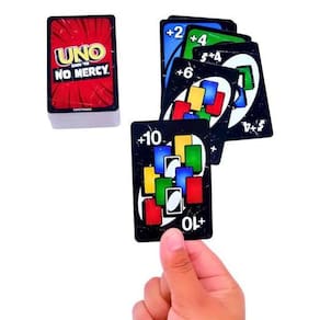 A partir de agora, a brincadeira ficará ainda mais divertida com o jogo de cartas UNO Show 'em No Mercy da Mattel com 169 peças (168 cartas e instruções), incluindo cartas extras e regras inovadoras. É indicado para crianças a partir de 7 anos e pode ser jogado por 2 a 10 jogadores. UNO Show 'em No Mercy é a versão mais implacável do clássico UNO! Com penalidades, regras inovadoras e a chance de eliminar todos os adversários, este jogo oferece uma experiência intensa. Ganhe livrando-se de todas as cartas ou derrotando os oponentes. Não se esqueça de gritar "UNO" ao ficar com uma carta.