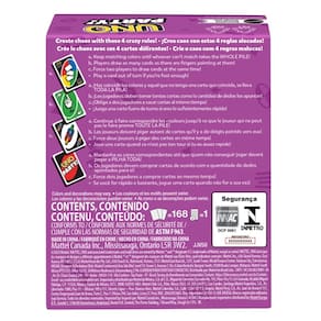 Reúna todos para o Jogo de Cartas UNO Party com a jogabilidade clássica do UNO, além de cartas extras e regras especiais projetadas especificamente para grupos grandes para manter a festa animada! Os jogadores ainda combinam cores e números como no jogo clássico, mas há muito mais cartas. Com até 14 jogadores no jogo, as coisas podem ficar barulhentas, loucas e selvagens! As regras desta versão farão os jogadores passarem cartas até que alguém não possa jogar, apontando para outros jogadores para comprar cartas e conectando dois jogadores que devem comprar ao mesmo tempo.