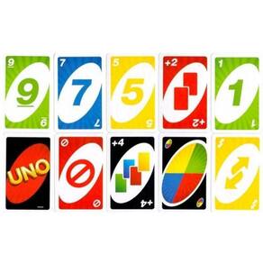 Uno é um jogo de cartas com uma regra sensacional para toda a família. Pode ser jogado com até 5 jogadoresO jogo Uno é o número 1 entre os jogos Livre-se depressa de todas suas cartas, use as cartas de ação contra seus adversários e quando você tiver apenas uma carta na mão, não se esqueça de gritar UNO.Ótimo para entretenimento e aproveitar o tempo livreA versão tem 54 cartas cada baralhoÉ fácil começar...É impossível pararTamanho da carta: 8,5 cm x 5,8 cmPodendo jogar 02 à 10 jogadoresO pacote inclui:108 x cartas de papel1 x Embalagem com o jogo Uno1 x Manual de instruções da UNO Cards