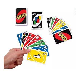 Uno é um jogo de cartas com uma regra sensacional para toda a família. Pode ser jogado com até 5 jogadores O jogo Uno é o número 1 entre os jogos Livre-se depressa de todas suas cartas, use as cartas de ação contra seus adversários e quando você tiver apenas uma carta na mão, não se esqueça de gritar UNO. Ótimo para entretenimento e aproveitar o tempo livre A versão tem 54 cartas cada baralho É fácil começar...É impossível parar Tamanho da carta: 8,5 cm x 5,8 cm Podendo jogar 02 à 10 jogadores O pacote inclui: 108 x cartas de papel 1 x Embalagem com o jogo Uno 1 x Manual de instruções da UNO Cards Ean: 6012509993947