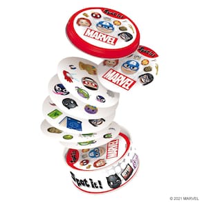 Zigomático Spot It! Marvel Emojis - Jogo de cartas da família Marvel Super Heroes para diversão com super-heróis! Jogo de combinação rápido para crianças e adultos, maiores de 6 anos, 2 a 8 jogadores, 15 minutos de diversão, feito - ABRACE O UNIVERSO MARVEL: Descubra! Marvel Emojis combina os personagens icônicos dos quadrinhos da Marvel com o clássico jogo familiar de observação. - BATALHA DE OBSERVAÇÃO RÁPIDA: Participe de uma batalha divertida de observação rápida ao identificar o único símbolo correspondente entre duas cartas, com os super-heróis da Marvel favoritos dos fãs, como Homem de Ferro, Capitão América e Viúva Negra, em forma de emoji. - MARVEL IN EMOJIS: esta nova versão do Spot It! apresenta personagens conhecidos e amados da Marvel representados na adorável forma de Emoji. - PORTÁTIL E RÁPIDO: Descubra! é rápido de aprender, fácil de ensinar e sua embalagem de lata portátil o torna o jogo perfeito para levar para qualquer lugar. - DIVERSÃO EM FAMÍLIA: aprimore suas habilidades de observação e reflexos ultrarrápidos com cinco modos de jogo diferentes que desafiam toda a família a identificar símbolos iguais e chamá-los!