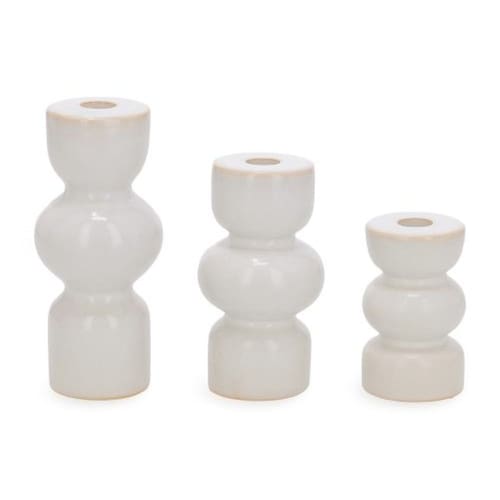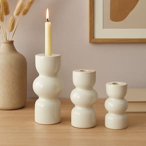 Este conjunto de castiçais em cerâmica traz elegância e personalidade para a decoração. Com design moderno e acabamento acetinado, cada peça possui formas orgânicas que se complementam, criando um visual harmônico tanto em composições na mesa de centro quanto em aparadores e prateleiras.