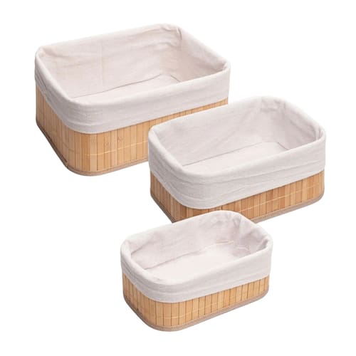 Jogo De Cestos Organizadores Em Bambu Com 3 Peças Lyor -